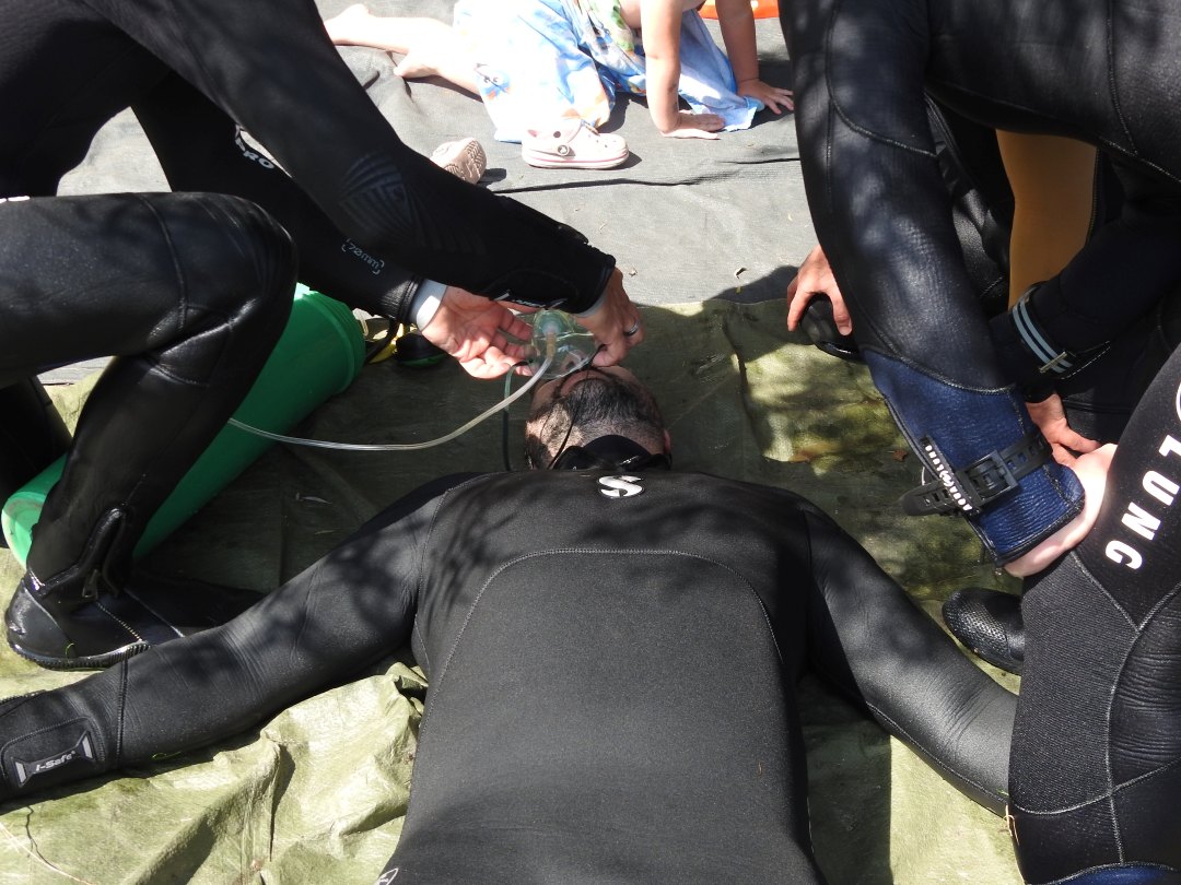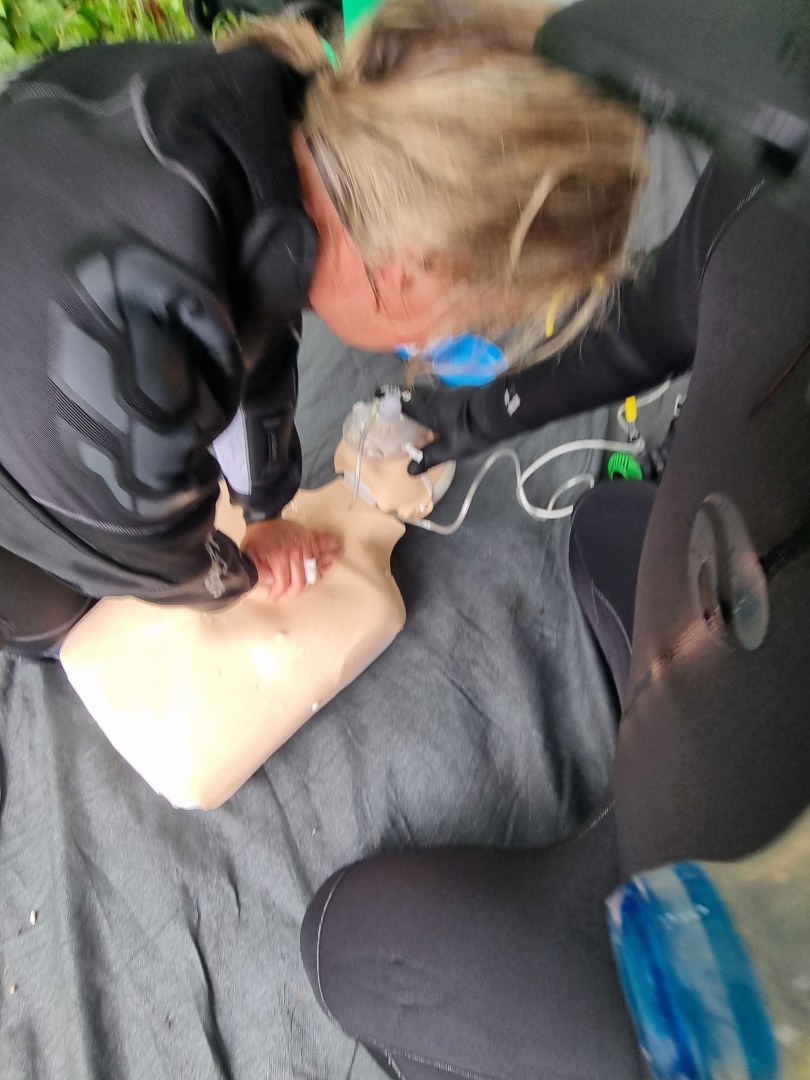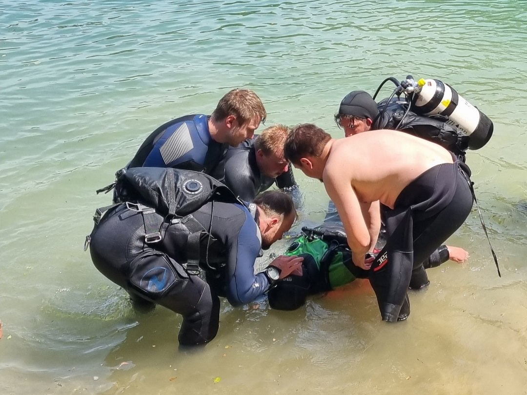 Am ersten Praxistag trainierst du alle Rettungsfertigkeiten Schritt für Schritt – klar erklärt, mit Zeit und Ruhe. Unter anderem Selbstrettung und Stressmanagement, Hilfeleistung für müde und in Panik geratene Taucher und Rettung bewusstloser Taucher an der Oberfläche und unter Wasser. - Freiwasser – Tag 2: Der Tag, an dem alles passieren kann