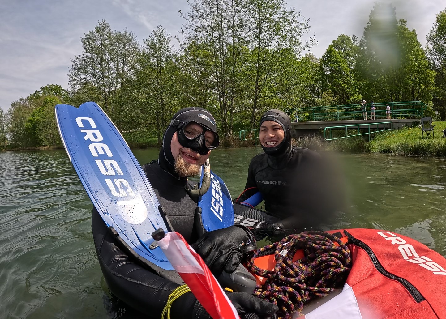 Du arbeitest an der Verfeinerung deiner statischen und dynamischen Disziplinen – mit gezielten Warm-Ups, mentalem Fokus und Leistungsanalyse. Dabei ist dein Instructor immer an deiner Seite – mit Tipps, Ruhe und Erfahrung. - 🌊 Freiwasser-Tieftauchgänge im See