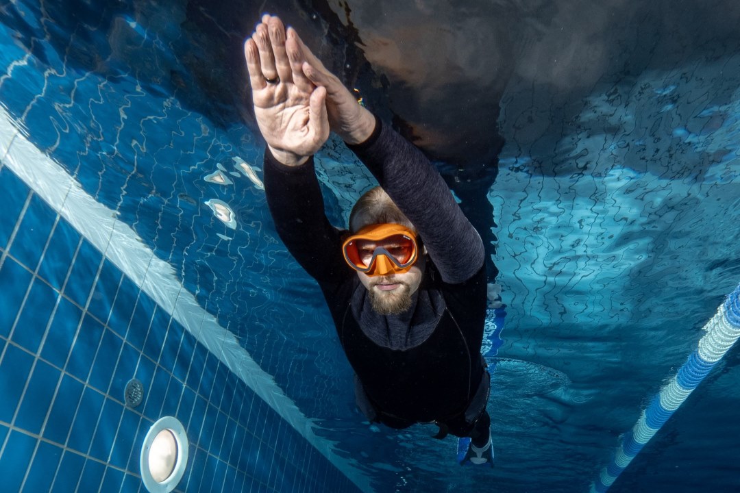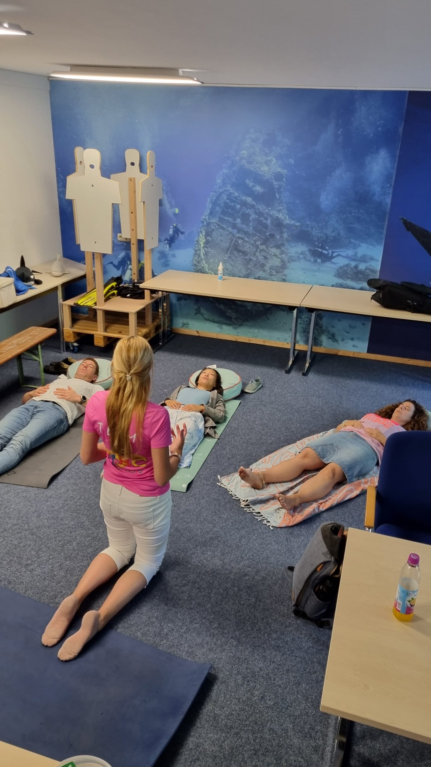 Du beschäftigst dich vertiefend mit den physiologischen Abläufen im Körper beim Freediving, mit Trainingsprinzipien, Ernährung, Entspannungstechniken und sicherheitsrelevanten Themen wie Blackout-Management und Buddy-Unterstützung auf fortgeschrittenem Niveau. - 🏊 Pool-Session (Statik & Dynamik)