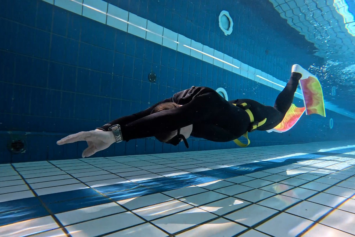 Dynamik-Teil: Nach dem statischen Training geht es weiter mit dem dynamischen Apnoetauchen. Auf den Bildern kannst du sehen, wie unsere Freediver elegant und konzentriert Bahn um Bahn im Pool zurücklegen. Wir zeigen dir, wie du deine Tauchtechnik optimierst, um effizient und mit maximaler Ausdauer durch das Wasser zu gleiten.